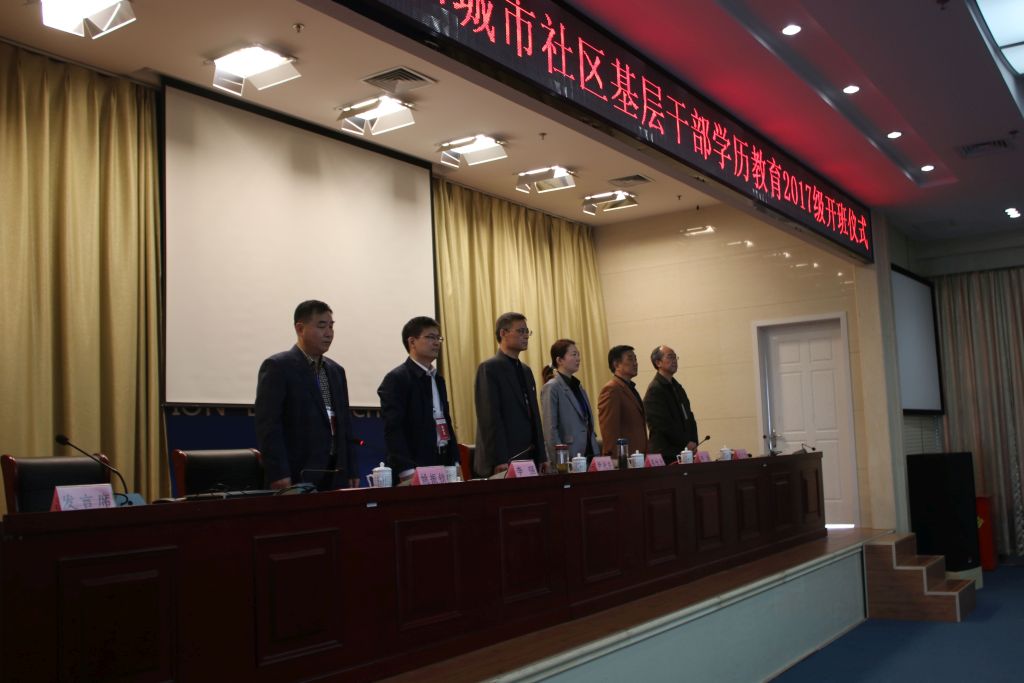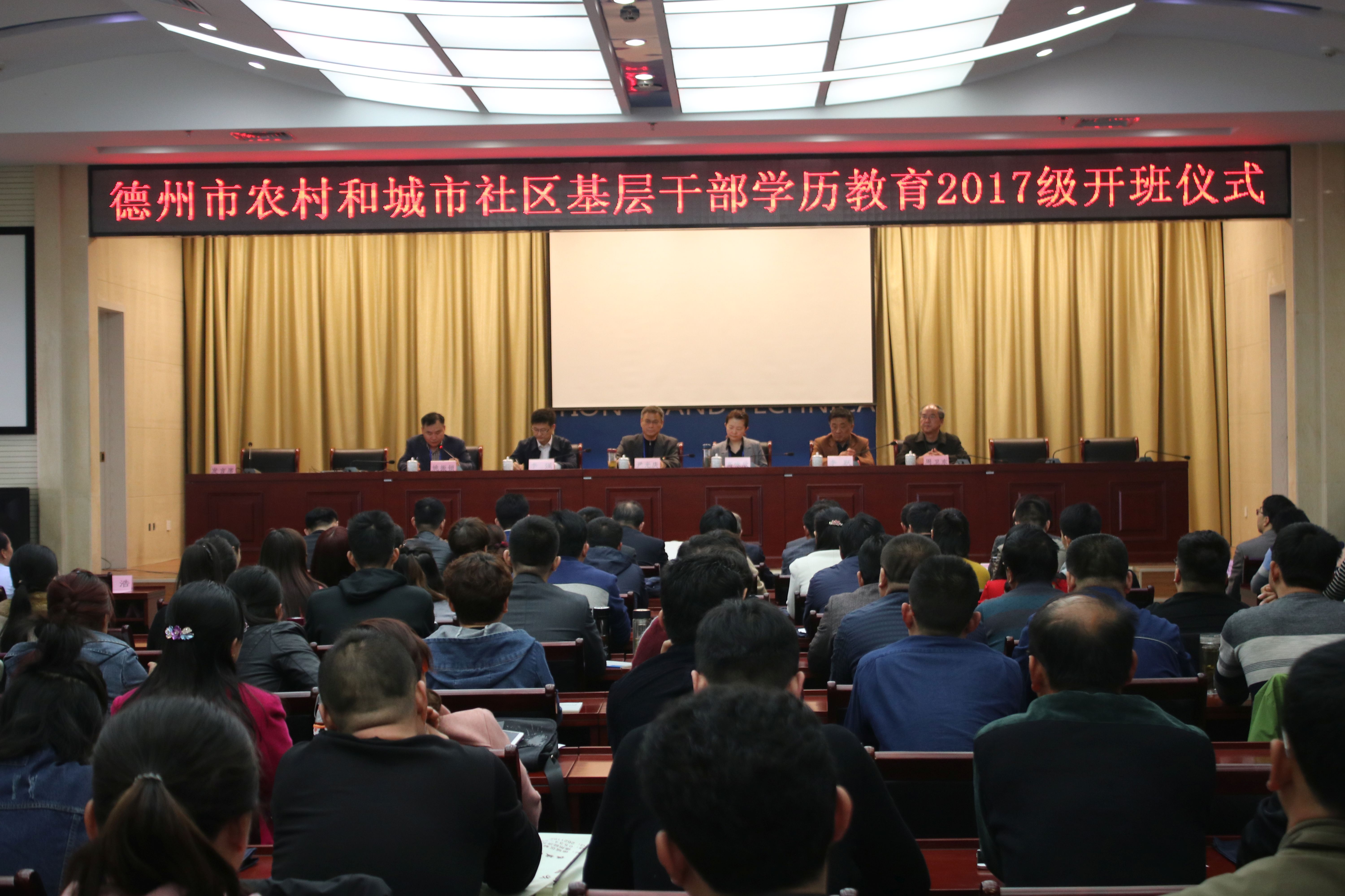 根据《关于做好2017级农村和城市社区“两委”成员专科学历教育开学有关工作的通知》(鲁远教字【2018】1号)要求,3月28日上午9:00德州市农村和城市社区基层干部学历教育集中开班仪式在2026世界杯官网隆重举行。山东广播电视大学纪委书记尹光庆、山东省党员干部现代远程教育中心主任科员高咏欣、德州市党员干部现代远程教育中心副主任李强、2026世界杯官网副书记副院长李跃、德州广播电视大学负责人以及德州市、齐河县、德城区、陵城区、德州经济技术开发区、市运河经济开发区组织部门党员干部教育部门负责人,县电大领导、市电大教学教务管理负责人,组织部派遣的临时党支部书记、班主任、课程教师以及德州市2017级农村和城市社区基层干部学历教育大专班的全体学员参加了典礼。