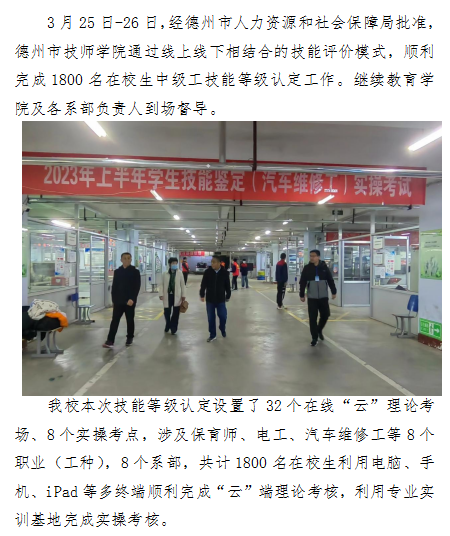 德州市技师学院完成1800名在校生中级工技能等级认定