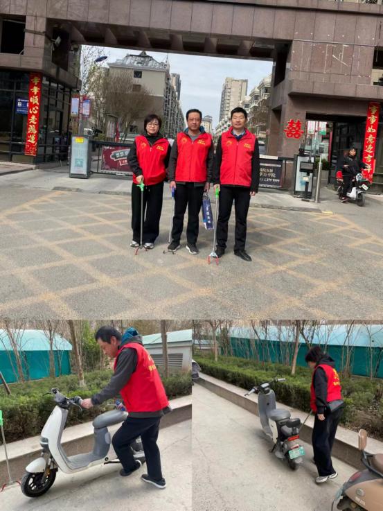 期间,志愿者们清理楼道及周边的垃圾,对绿化带草丛及灌木丛里隐藏的废纸、垃圾、烟头等进行全面彻底地清理;整理和规范摆放自行车和电动车。