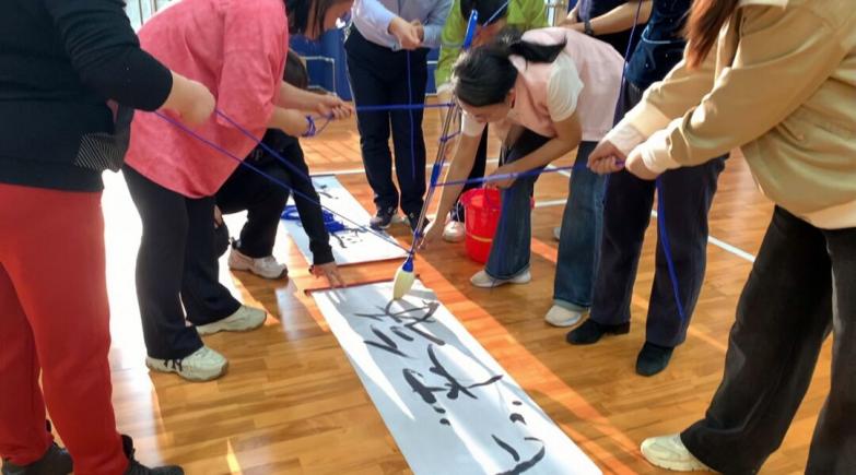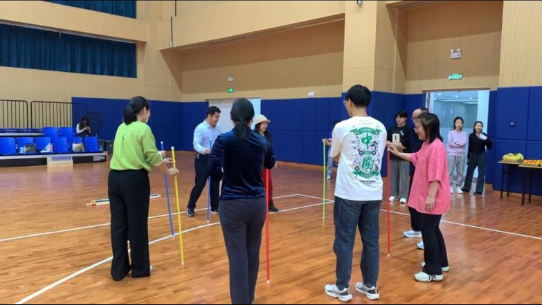 首先张苹带领参会人员参观了学校的建筑沙盘和校园风景,对学校现状、规划、特色培训项目等进行了介绍;随后进行了座谈。接着到学校综合体育馆观看花样跳绳表演,并参加室内特色拓展活动。大家相互协调、团结协作顺利完成了各项拓展体验项目。参加人员对本次活动给予了高度评价。