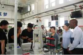 在张苹陪同下,厄尔内斯图·芒格拉一行参观了学校沙盘,电气工程系、电子与新能源技术工程系、健康管理学院实训室,绿色化工实训平台、现代智能制造实训平台、现代工业机器人实训平台、现代汽车工程实训平台、建筑园林工程系实训基地和学生宿舍及餐厅。