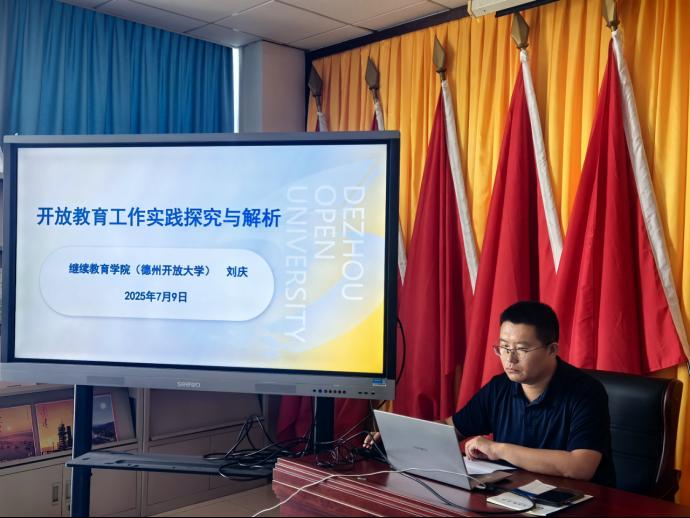 当日下午,刘庆以《开放教育工作实践探究与解析》为题,结合丰富的实践经验,系统剖析了开放教育工作的内涵、模式创新、难点痛点及解决方案,深化了大家对开放教育实践规律的认识,提升了业务能力。