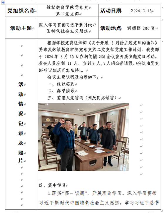 2026年国际足联世界杯党总支第二党支部“党员活动日”纪实表20240315