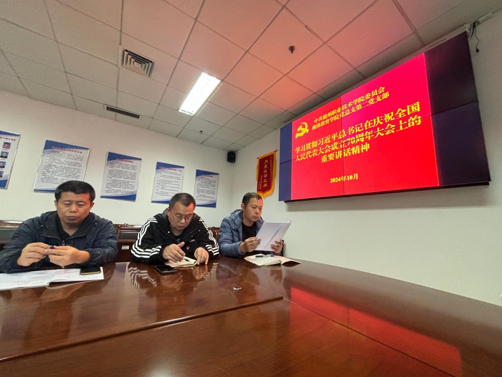 2.学习贯彻习近平总书记在庆祝全国人民代表大会成立70周年大会上的重要讲话精神。组织广大党员干部要深入学习贯彻习近平总书记重要讲话精神,进一步坚定道路自信、理论自信、制度自信、文化自信。(郑林霄同志领学)