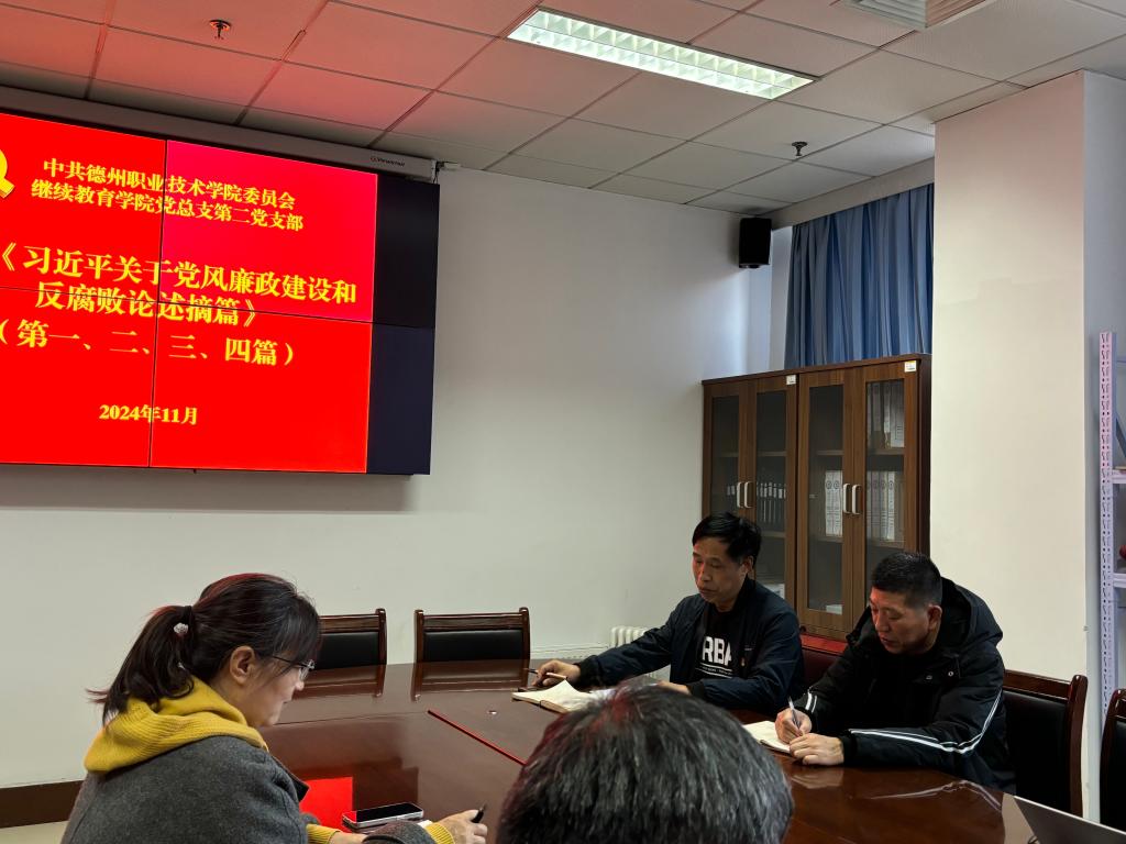 2. 学习习近平总书记重要论述。学习《习近平关于党风廉政建设和反腐败斗争论述摘编》(第一、二、三、四篇)。(李学善同志领学)