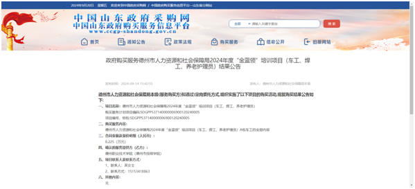 世界杯官网于9月13日参加德州市人社局组织的2024金蓝领车工、电工培训项目的投标,两个项目均中标。其中车工培训项目拟培训45人,电工培训项目拟培训60人。