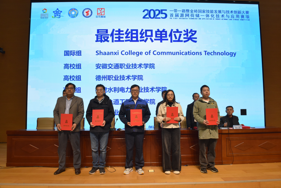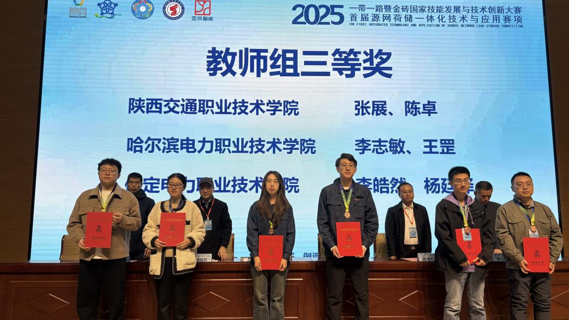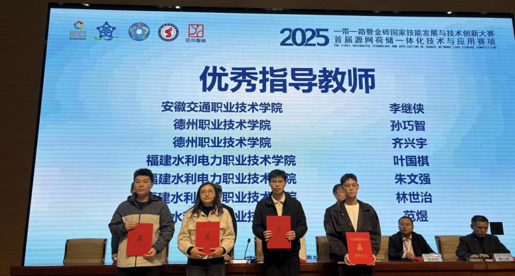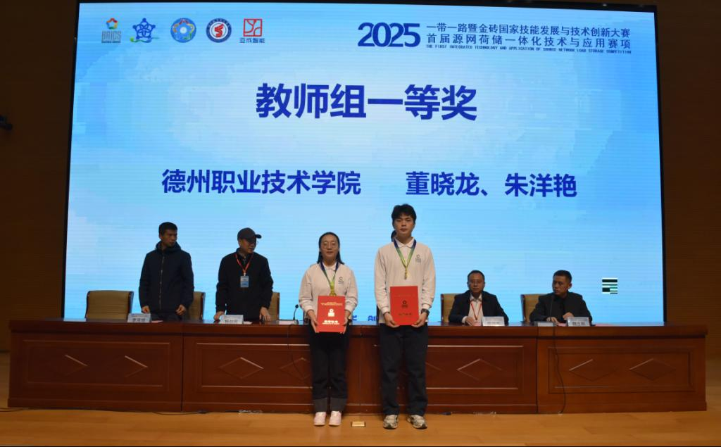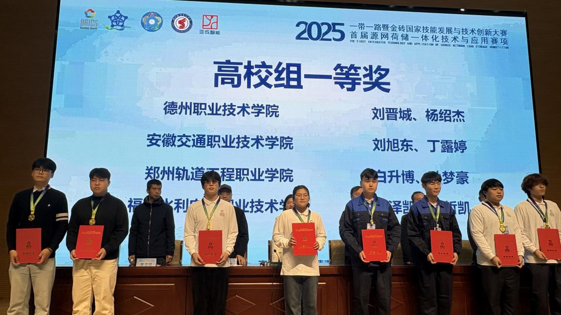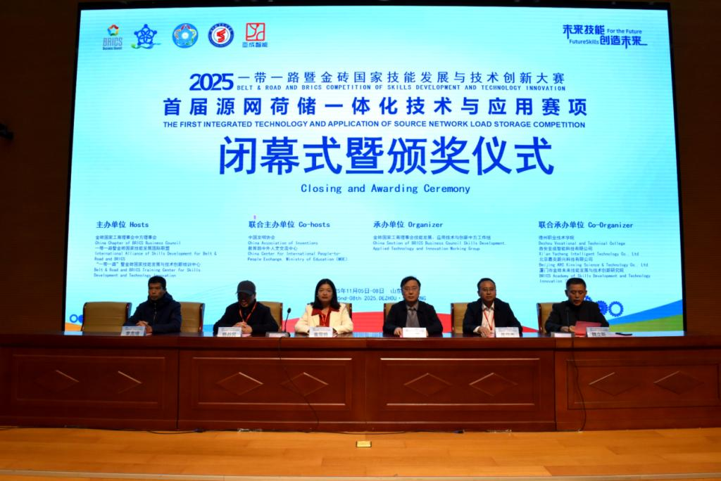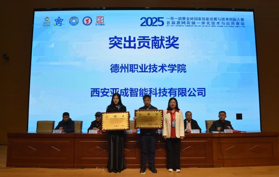 11月8日,由金砖国家工商理事会中方理事会、一带一路暨金砖国家技能发展国际联盟、一带一路暨金砖国家技能发展与技术创新培训中心主办,中国发明协会、教育部中外人文交流中心联合主办,金砖国家工商理事会技能发展、应用技术与创新中方工作组承办,德州职业技术学院、西安亚成智能科技有限公司等联合承办的2025一带一路暨金砖国家技能发展与技术创新大赛首届“源网荷储一体化技术与应用”赛项决赛在德州职院圆满落幕。